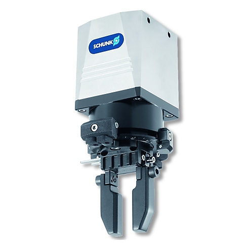 Schunk breidt zijn 24V modulair systeem voor de handlingsautomatisatie verder uit: de meest compacte elektrische grijp –en draaimodule EGS, is nu ook beschikbaar in grootte 40. De EGS kan werkstukken tot 0,55 kg grijpen en draaien in uiterst beperkte ruimtes. De speciale koppeling van het grijp –en draaimechanisme verzekert continue rotaties zonder elektrische doorslag. De spelingsvrije voorgespannen kruisrolgeleidingen dragen bij tot een nauwkeurig grijpgedrag en een constante grijpkracht over de gehele lengte van de vingers.