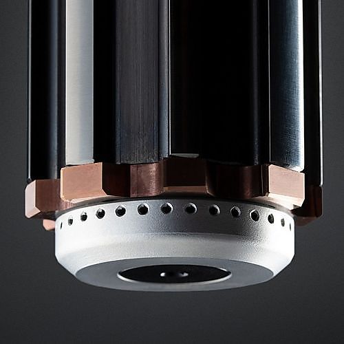 Bij het ruimen van doorlopende gaten of diepe blindgaten zijn standaard oplossingen vaak te begrensd. Met name langspanende en moeilijk verspaanbare materialen vragen om aanpassingen van het gereedschapssysteem en de interne toevoer van koelmiddelen. Horn komt met zijn 3D-geprinte koelmiddelschijf met een op de gereedschapsschacht te bevestigen oplossing voor dit probleem. De directe, doelgerichte koeling en vooral een procesveilige spaanafvoer zorgen voor een langere standtijd. De additieve fabricagetechnologie maakt volledig vrije vormgeving van de koelmiddeluittreding mogelijk.