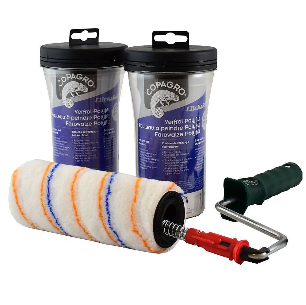 Copagro innoveert met Click & Roll! Met dit nieuw verfrollerconcept kan de schilder eenvoudig en schoon zijn verfroller vervangen, geen vuile handen. Zonder krachtinspanning: 1 druk en de verfroller komt los van de beugel. Verkrijgbaar bij uw Copagro-groothandel. www.copagro.be